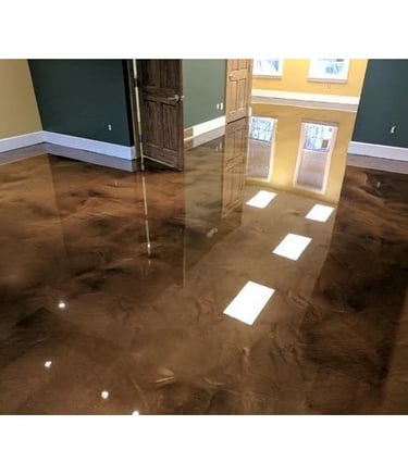 Our Metallic Epoxy Floors bring color, shine, and style to any space. Each design is one of a kind — giving your floors a modern, marble-inspired look that’s both strong and elegant.